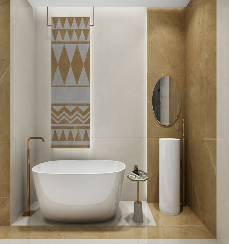 撷取古希腊宫廷的古典米黄色调,配合深浅不一的柔云团花纹理,静泊深远,彰显高贵与典雅,适合现代简约、新中式、新古典等风格。
